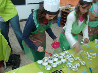 | Vestidos a rigor ( avental e touca) preparavam-se para descobrir os ingredientes para um pequeno almoço fornecedor de energia para começar o dia. |