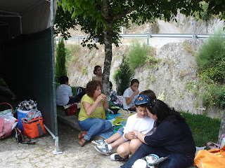 Ou foi falta de coragem para passar no túnel ou esperava pelo resto do grupo, pois o Pedro tinha sido picado, nos tornozelos por abelhas.